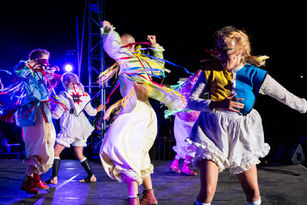 Bursting with colour and wonder, Mari Hwyr! harnesses the spirit of folk infused with the frenetic energy of hyperpop in an awe inspiring symphony of dance, circus and design.